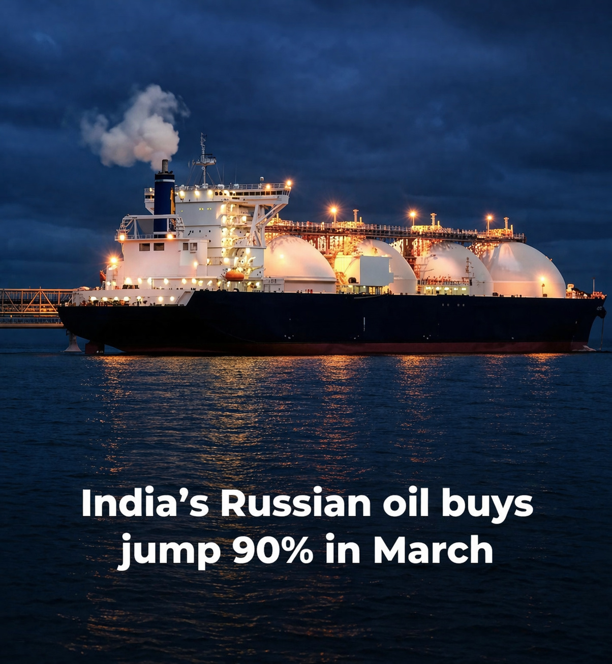 - India’s Russian oil imports jumped 90% in March