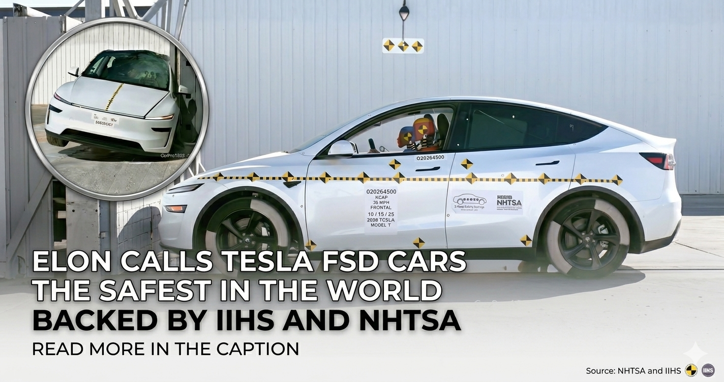 Tesla has once again grabbed global attention after CEO Elon Musk claimed that Tesla vehicles equipped with Full Self-Driving (FSD) technology are among the safest cars ever made. The statement, backed by references to crash safety ratings from IIHS and NHTSA, has sparked widespread debate across the automotive and tech world.